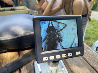 Fomos para as hortas de Creixomil onde fizemos a recolha de seres vivos na ribeira da Costa e Couros. Realizamos a observação e identificação de seres vivos como girinos, larvas de libelinhas, larvas de mosquitos e crustáceos... que permitem avaliar a qualidade da água - boa, sem poluição.